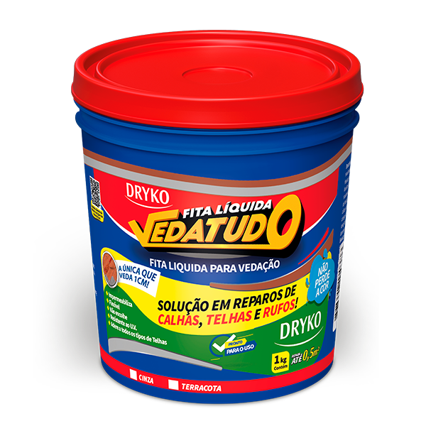 Emulsão acrílica, na cor terracota com cargas minerais inertes e aditivos para vedação de trincas e fissuras em telhas e lajes ocasionadas pela movimentação estrutural e furos deixados por pregos ou parafusos, impedindo a penetração de água.