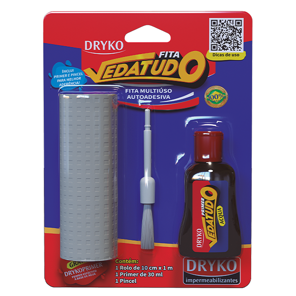 Aplique uma demão do DRYKOPRIMER ACQUA, disponível na mesma embalagem da DRYKOFITA VEDATUDO, e aguarde a secagem por no mínimo 6 horas antes da colagem.