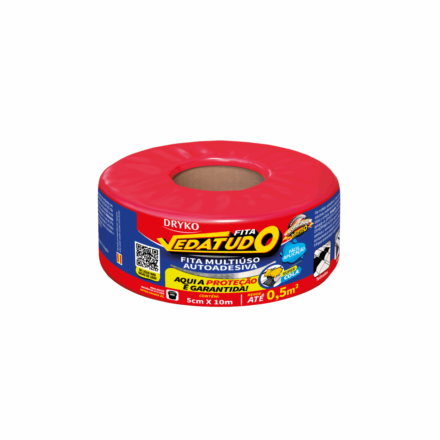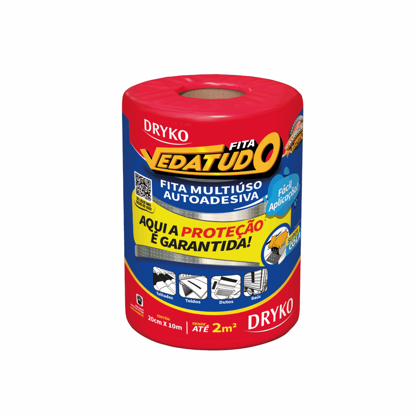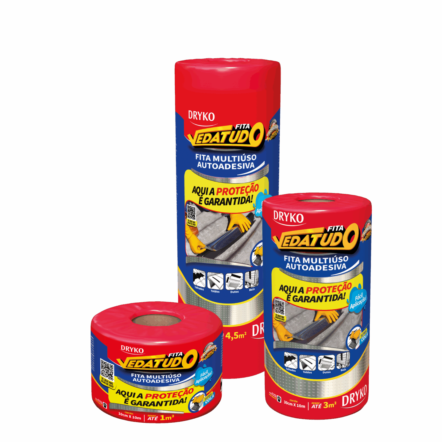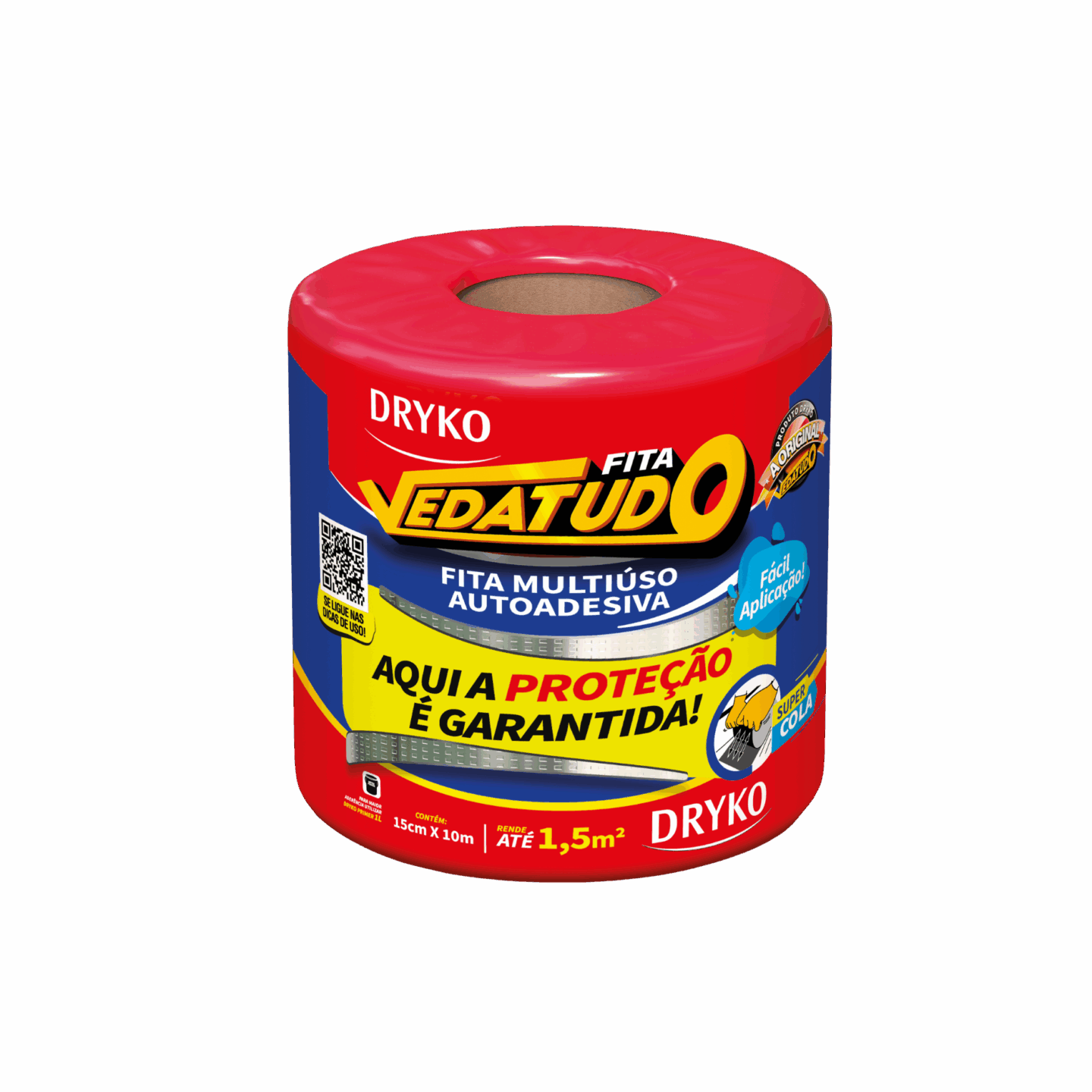 Fita autoadesiva multiuso à base de asfalto modificado, autoprotegida com filme de alumínio que permite sua exposição a intempéries e aos raios solares, sendo de fácil aplicação, na qual proporcionam medidas imediatas para solucionar problemas de gotejamento e vedações.